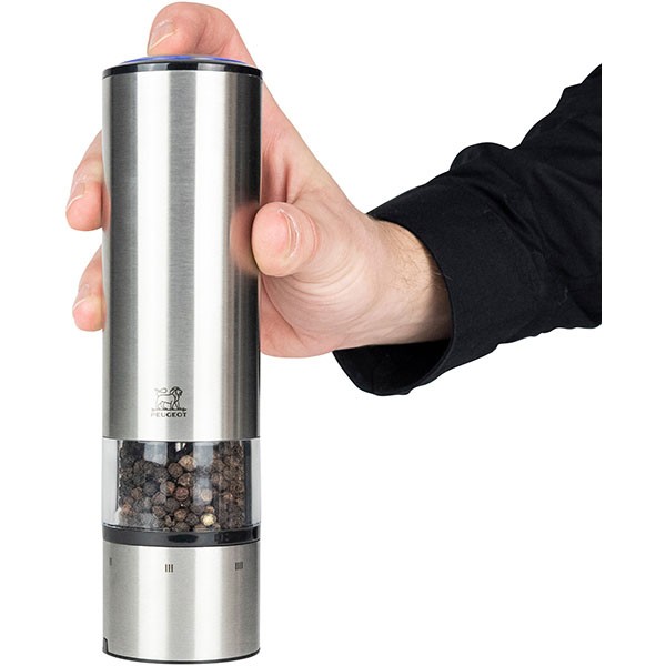 Мельница для перца электрическая на батарейках 20 см, акрил, нержавеющая сталь, ELIS SENSE PEUGEOT, Франция